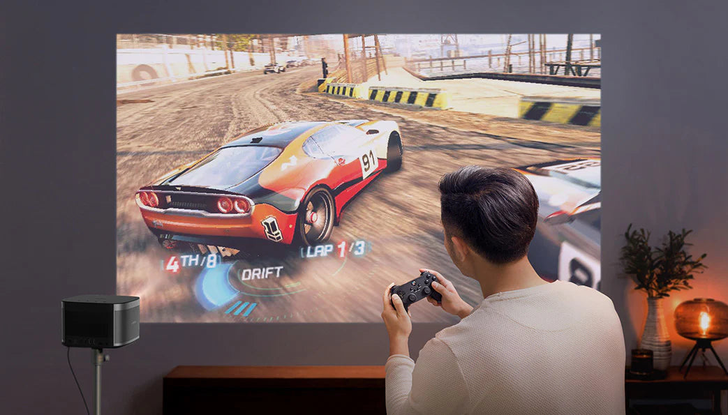 Le projecteur est plus lumineux que ce que je pensais. Les manettes répondent bien, aucune latence. Je recommande à 100 % !